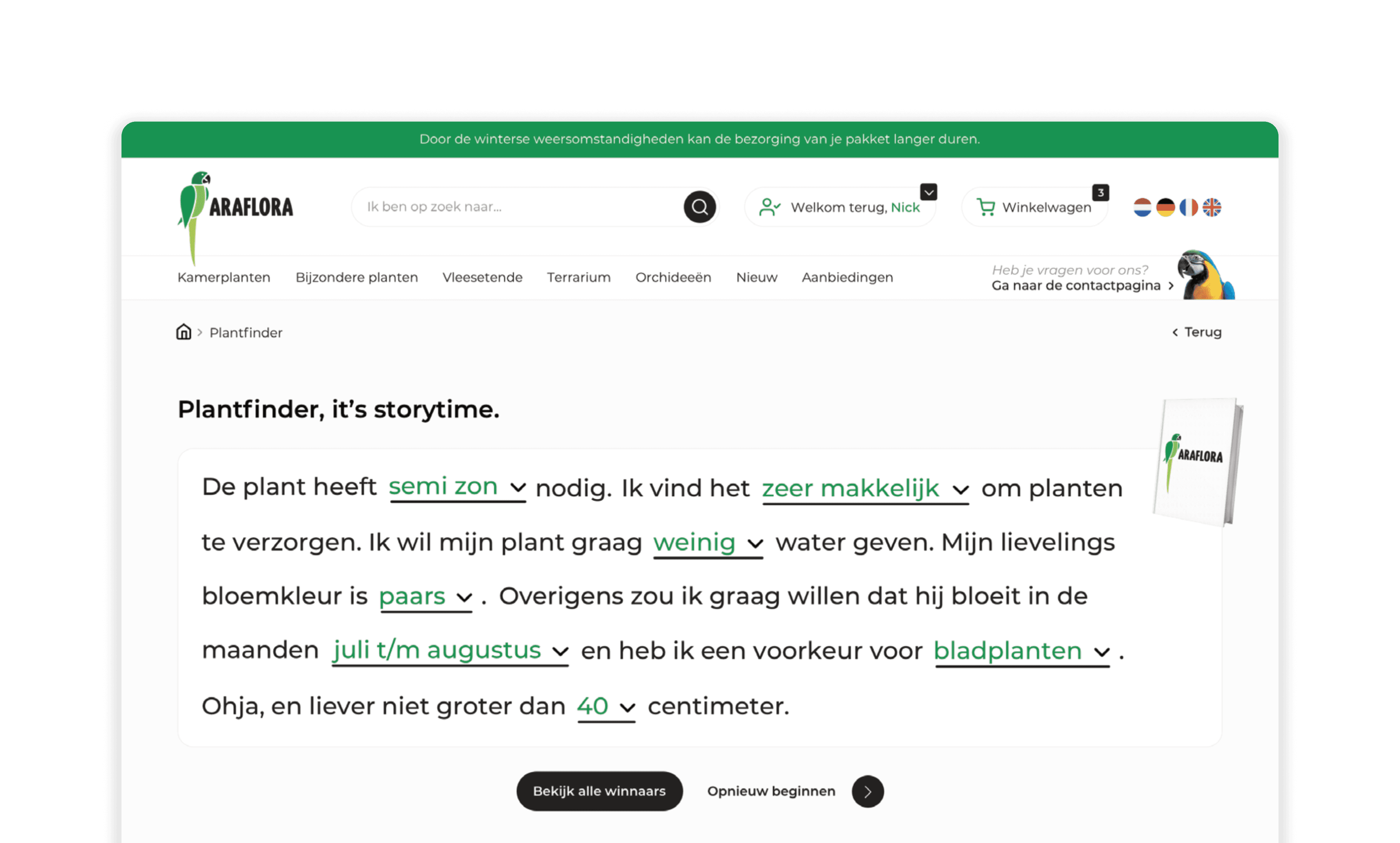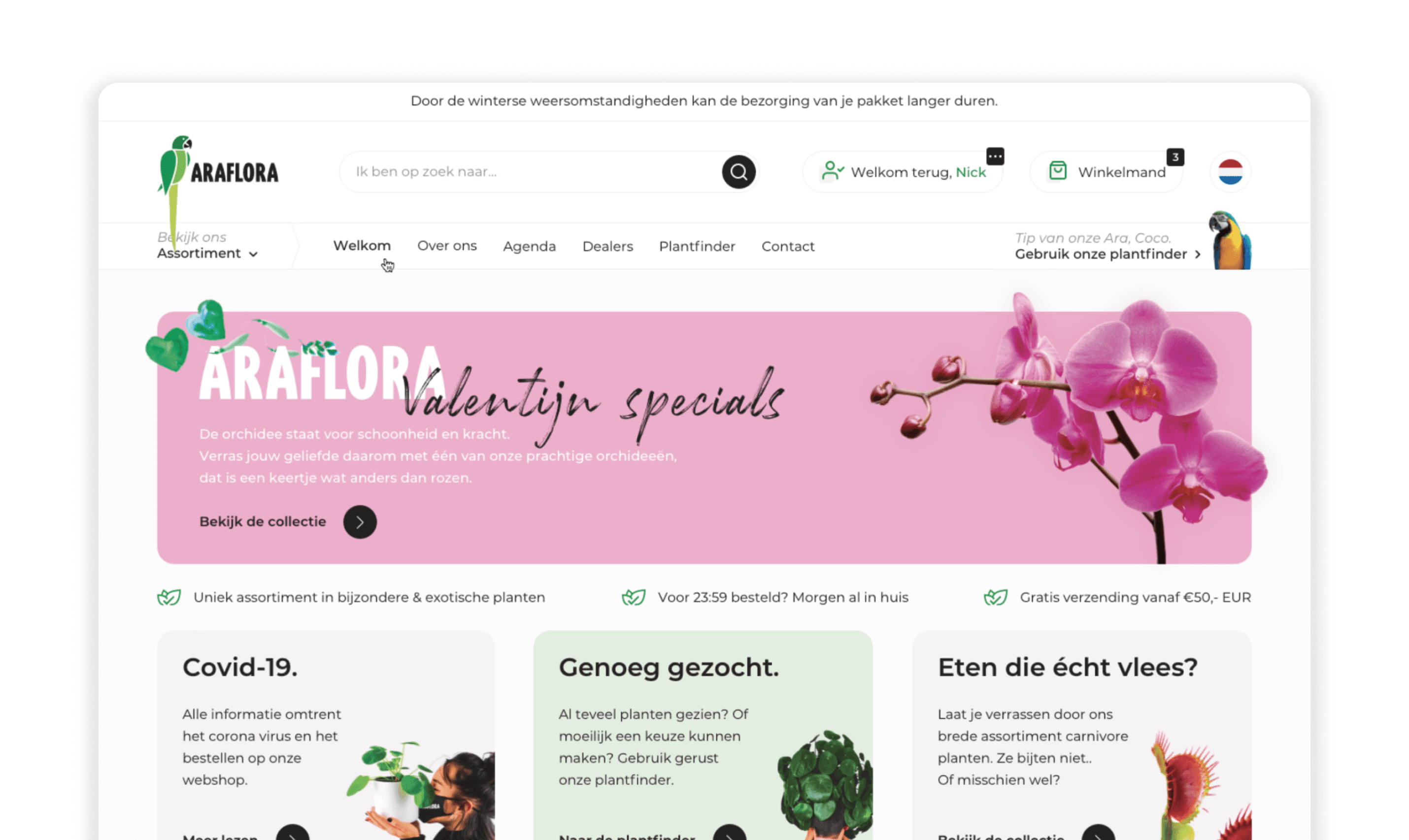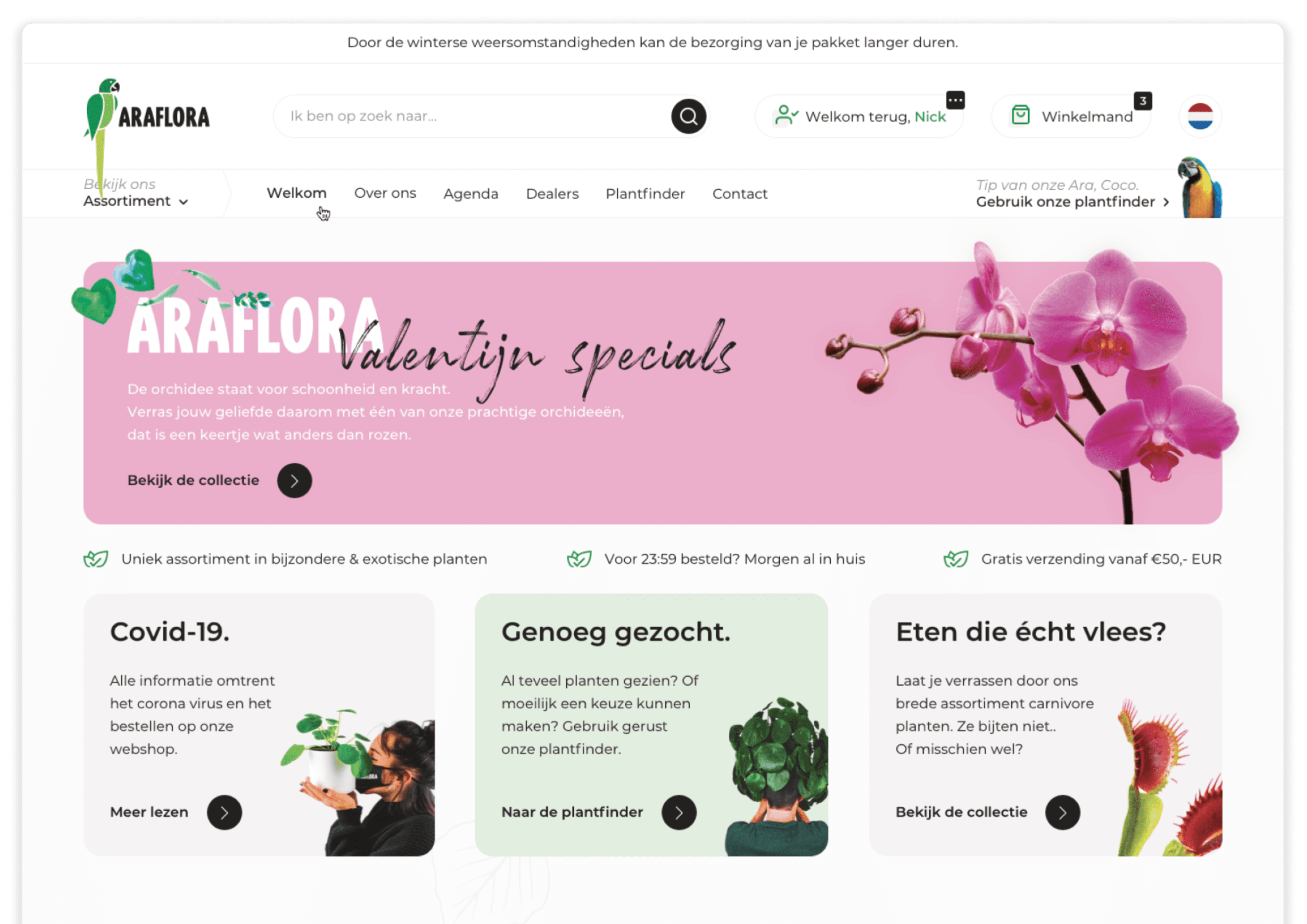 De bestaande website kon de groei en complexiteit van Araflora niet meer bijbenen. Intern leidde dit tot omslachtige processen: bestellingen, voorraadbeheer en uitzonderingen waren moeilijk te overzien en te verwerken. Tegelijkertijd sloot het visuele ontwerp niet meer aan bij de professionaliteit en ambities van het merk.