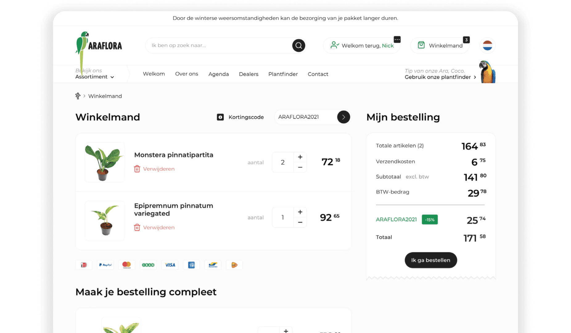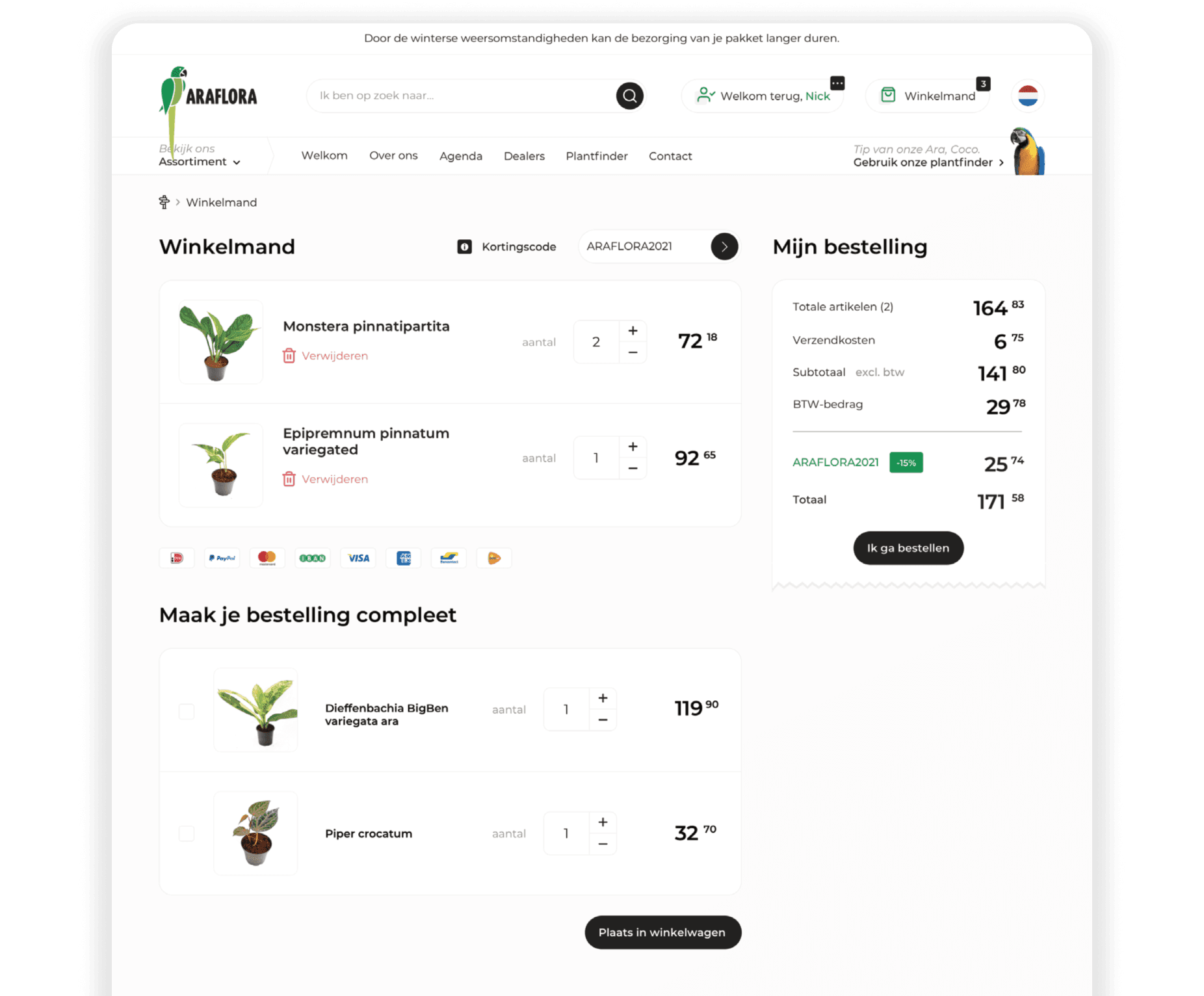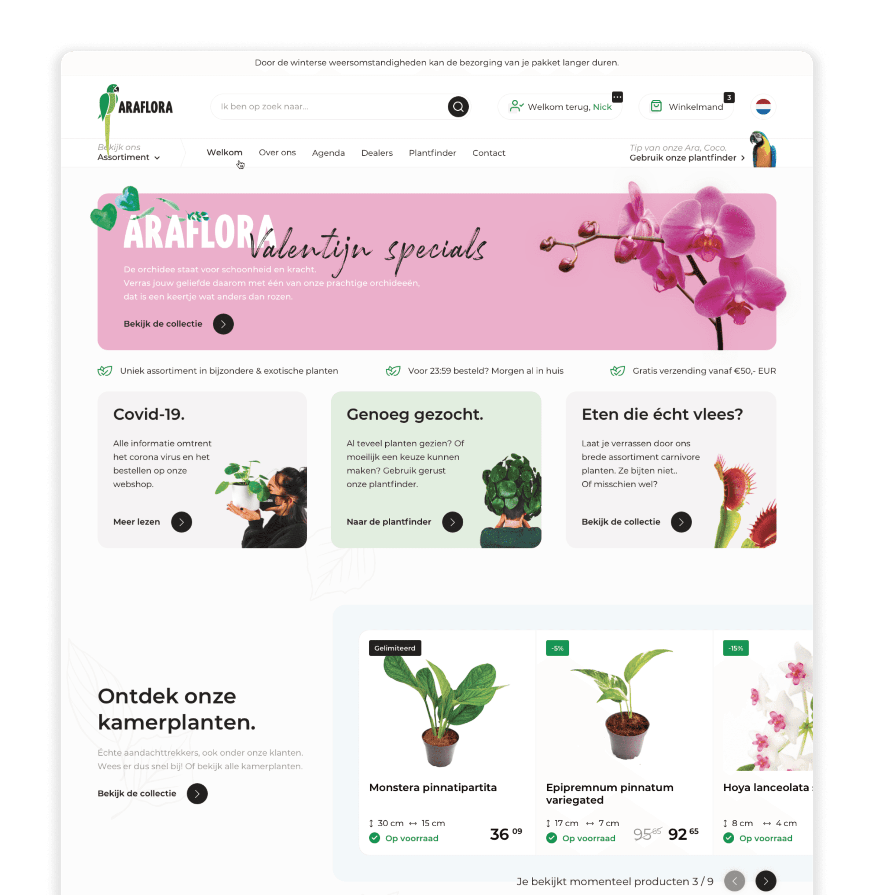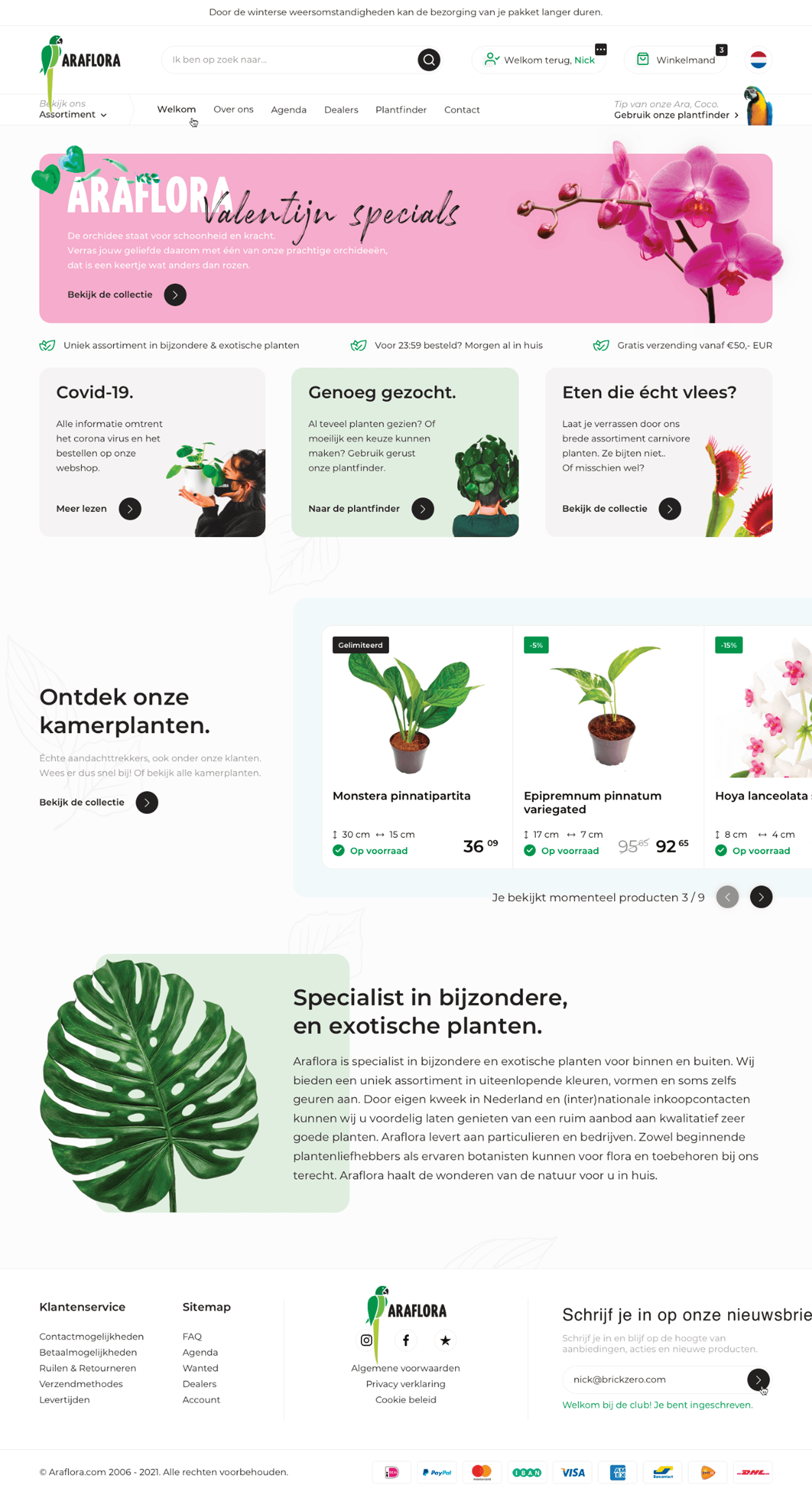 Tijdens mijn stage bij Brickzero heb ik gewerkt aan het herontwerp van de website van Araflora, een specialist in bijzondere en exotische planten voor binnen en buiten. De webshop was verouderd, draaide op een oud systeem en bood onvoldoende ondersteuning voor mobiele en internationale bezoekers.