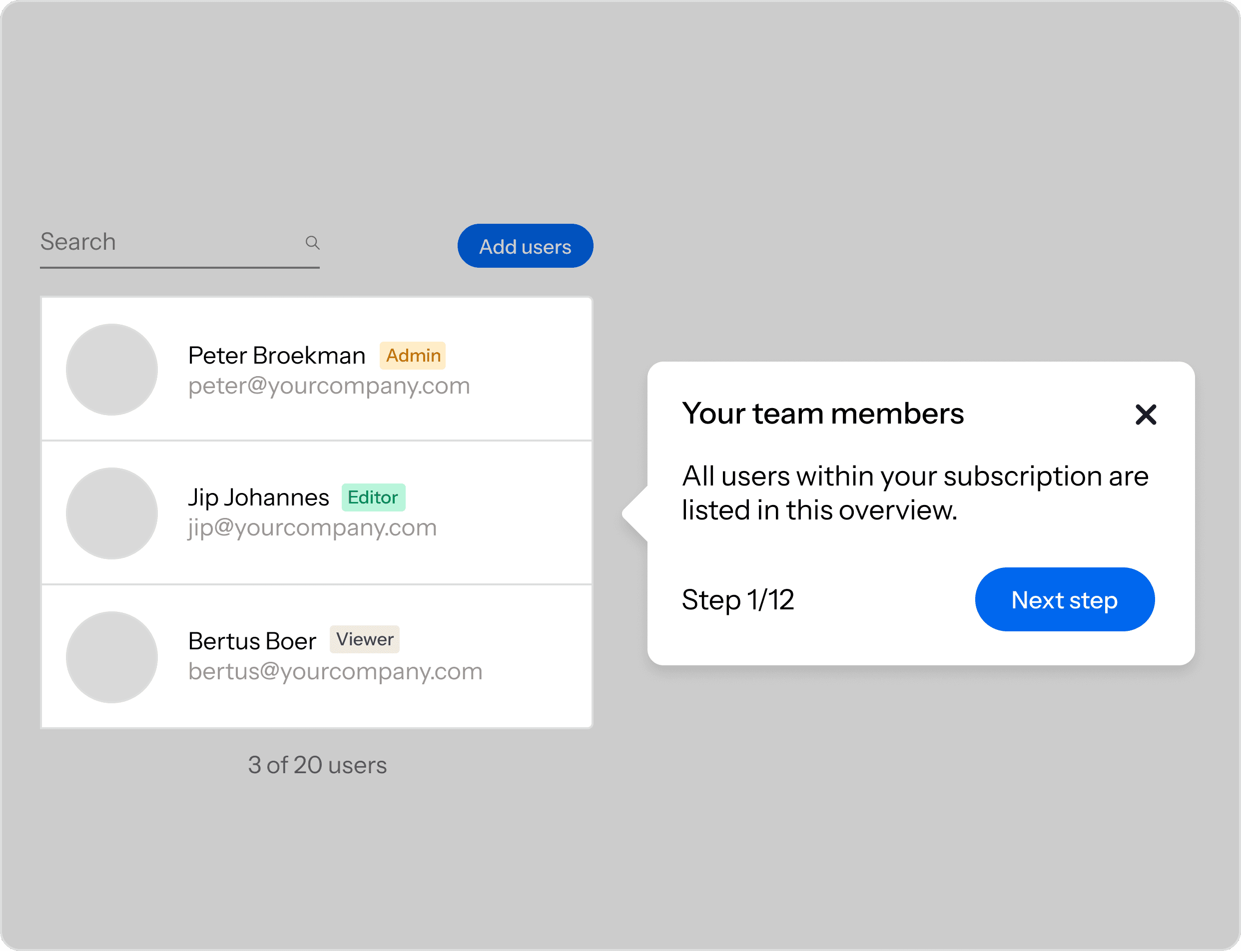 gebruikersbeheer (uitnodigen, rollen en restricties);